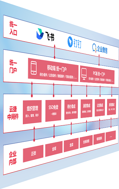 对协作平台提供支持服务,,,,支持企业应用与协作平台对接,,包含组织同步、、、、消息集成、、、、待办集成等。。支持目前主流的协作平台:钉钉、、、、企微和飞书。。。。